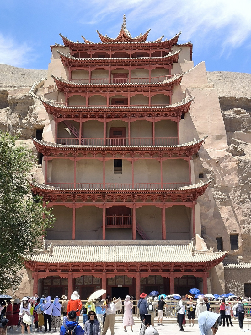 是世界上现存规模最大、内容最丰富的佛教艺术地,与山西大同云岗石窟、河南洛阳龙门石窟、甘肃天水麦积山石窟并称为中国四大石窟,并由此诞生了一门敦煌学,其标志性建筑为“九层楼”,是莫高窟最大的建筑物,此外最北边第17窟的“藏经洞”也是游客必看的,此洞内曾装满从三国魏晋到北宋的经卷、文书等多达5万余件,近代被西方人骗购去近4万件,现绝大部分藏于英、法、俄、日等国的公私收藏机构,仅有少部分保存于国内。