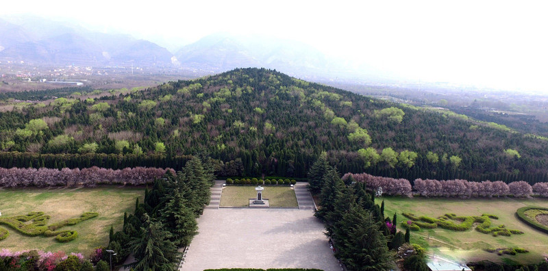 秦始皇陵位于陕西省西安市临潼区骊山北麓,有内外两重夯土城垣,中间的陵冢呈覆斗形,高51米,底边周长1700余米。秦陵四周分布着大量陪葬坑和墓葬,其中最著名的是秦陵以东1.5公里处的兵马俑坑,目前已挖掘出3个俑坑坑呈品字形排列,总面积达25380平方米,其中最早发现的一号俑坑规模最大,平面呈长方形,东西长230米,