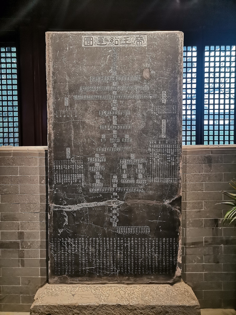 《帝王绍运图》是一块绘制有我国自五帝至南宋理宗时期的帝王世系表。碑石最上端篆刻“帝王绍运图”五字,“绍”即“接续、继承”的意思。