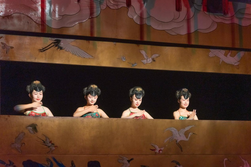 第二场是选妻。这个又见平遥的创新是让观众在不同的布景中移动,实现移步换景。不过由于观众人数设计太多,非常拥挤、大家都在拼命地跑以抢到观看位置,使得这个创新真是令人哭笑不得,如果进场人数减少一半,体验会增强不少。