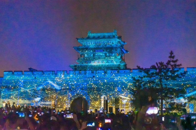 晚上吃完饭到南门外看免费的灯光秀。今年第8个世界遗产。就是将灯光打在城墙上,形成各种效果。只能说还行,但是人实在太多了。散场之后,由于没有适当的疏散引导,等候散场的时间比看灯光秀的时间还长。我们怕出现踩踏(我们走后的第三天,真的发生拥挤坠桥事件),等了许久才再次进城。