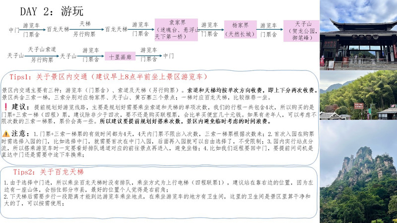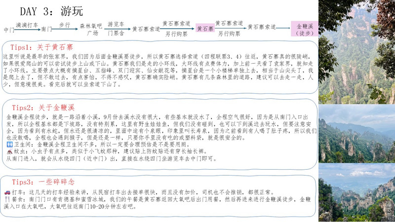 为您规划一次为期3天的张家界之旅,可以按照以下行程安排: