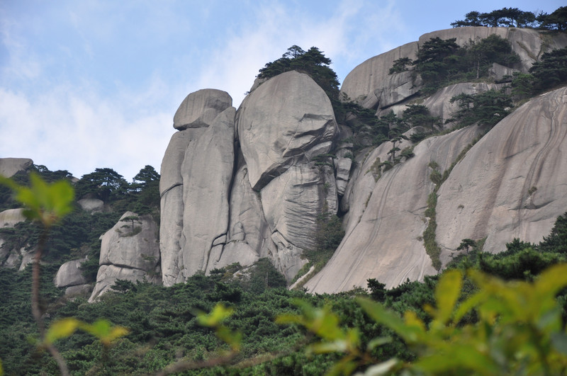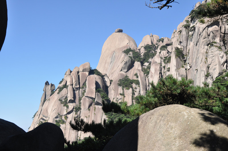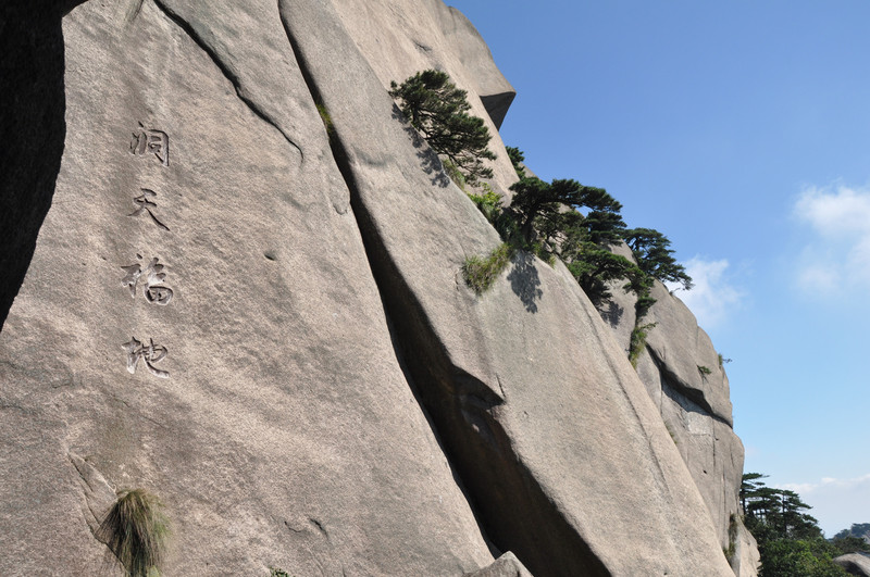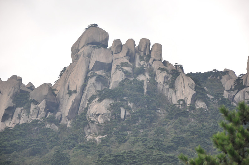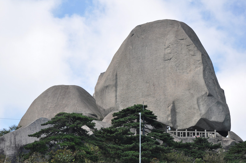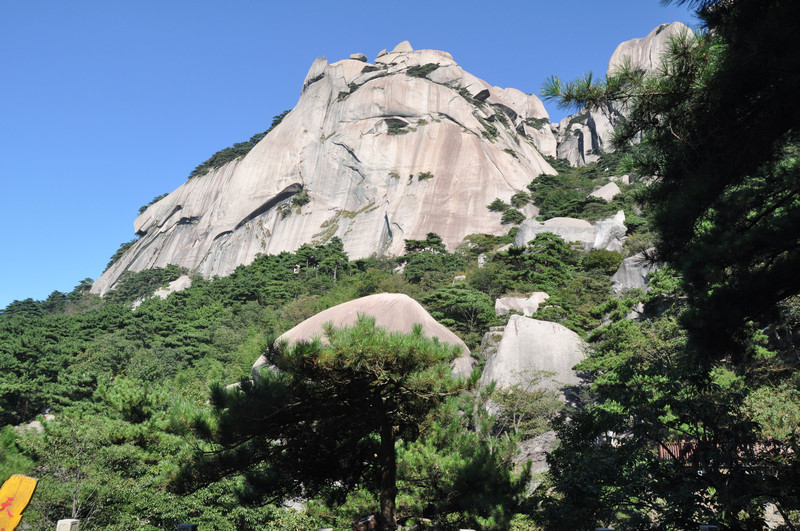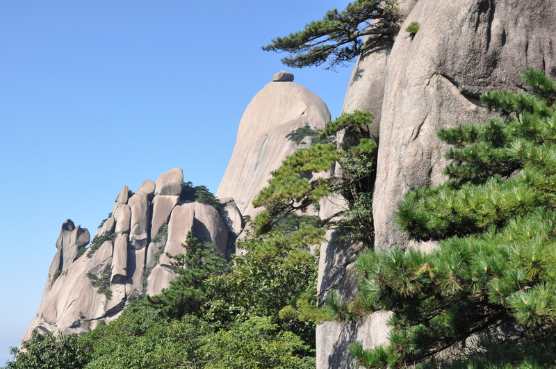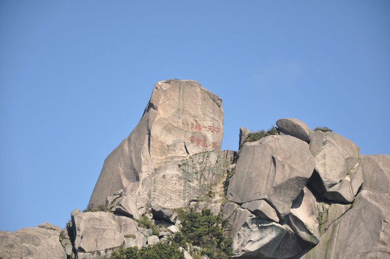 天柱峰,又称皖伯尖,万山尖、朝阳峰。道家称为司命真君发祥地。海拔1488.4米。在天柱峰前正面崖壁上,镌有“孤立擎霄,中天一柱”八个大字,横书其上。除左、右侧有飞来、三台两峰外,另有五指、莲花、天池、含珠、飞来、月华诸峰拱卫周边,奇松、怪石、云海、佛光、各具风情。