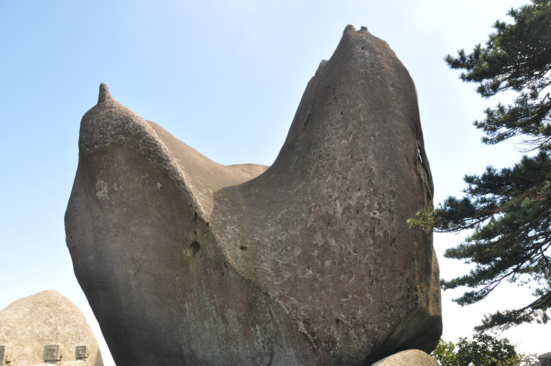 峰顶东侧是一巨大岸石脊岗,狭长险陡,俗称青龙背,亦称鲫鱼背。峰顶西巅,危石高耸,似石龙昂首。