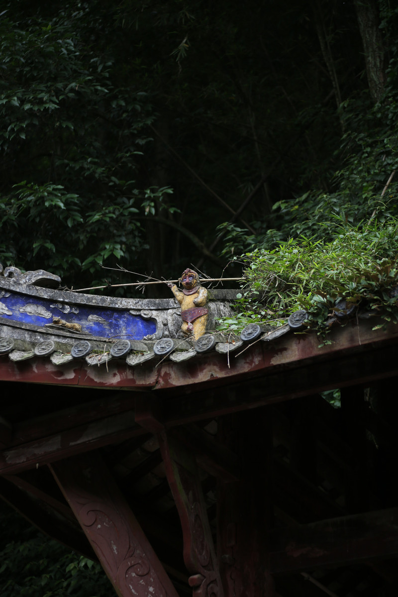 孔雀明王在佛教中是慈悲的象征,其法力能够让“一切厄难悉得消除,所有祈愿皆得圆满”。在《西游记》中,有一段故事与孔雀明王有关,这可能是孔雀洞亭子上雕刻有孙悟空和猪八戒形象的原因。