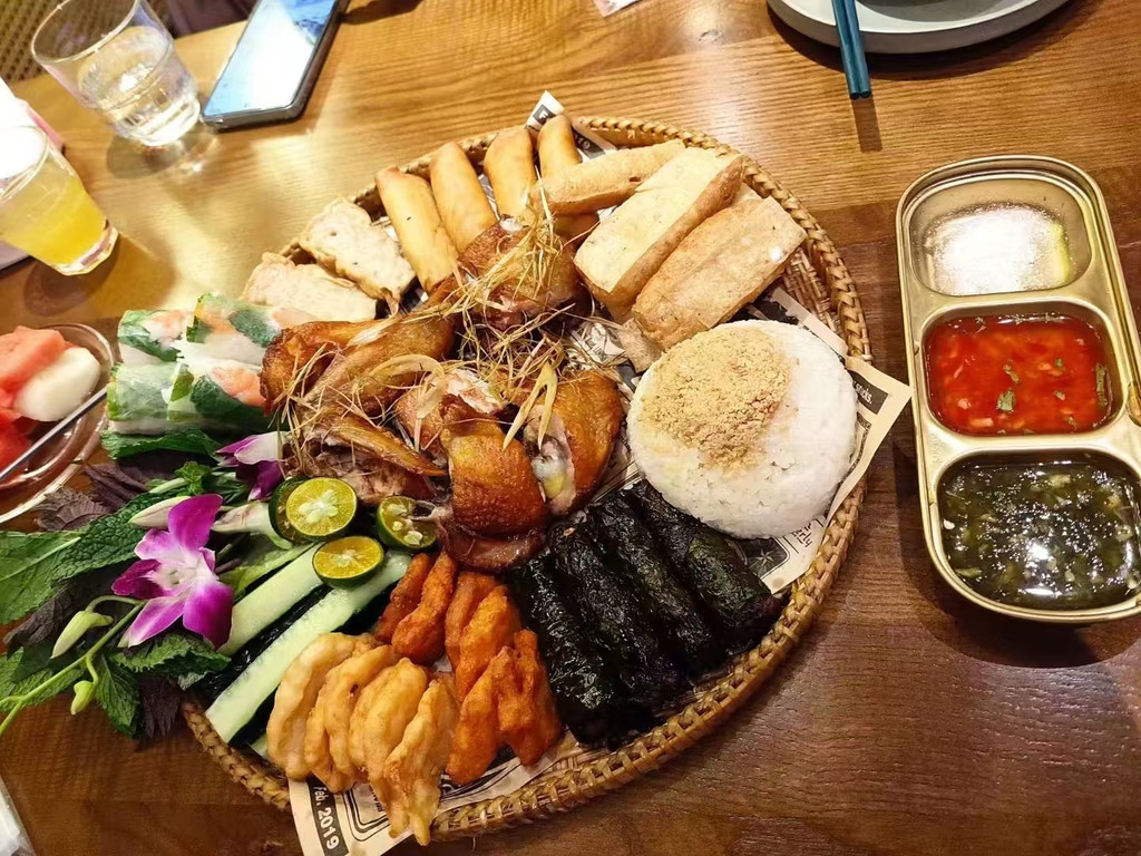 在银滩逛了2个小时,我们便坐上10元/人的“专车”去网红街——侨港风情街,在侨港风情街附近有一个港湾,是本地人出海归来的船的停靠点,大家有时间可以在那里坐坐吹吹港风。我们在港湾那里坐了半个小时就走去侨港风情街吃饭,这条街都是以北海特色为主的小吃,附近都是以吃海鲜为主的食店,我们在网上里找了一间比较好评价的店,叫了一个套餐,没吃之前以为都是旅游地方东西没什么好吃,但上菜后,惊艳了我们。东西价格合理、味道好吃。