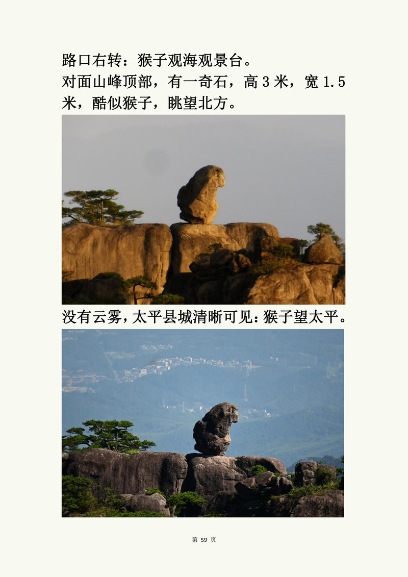 - 猴子观海:位于山顶上,放眼远眺一片云海,壮观而秀美。