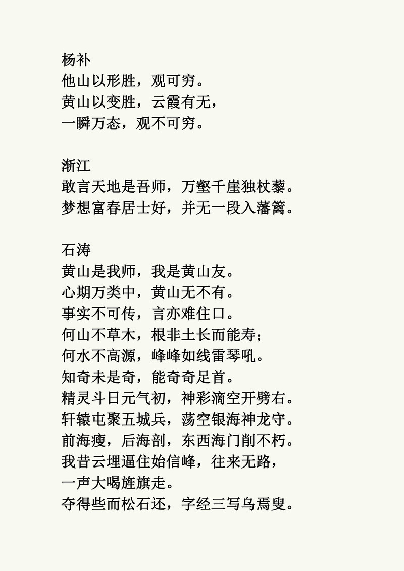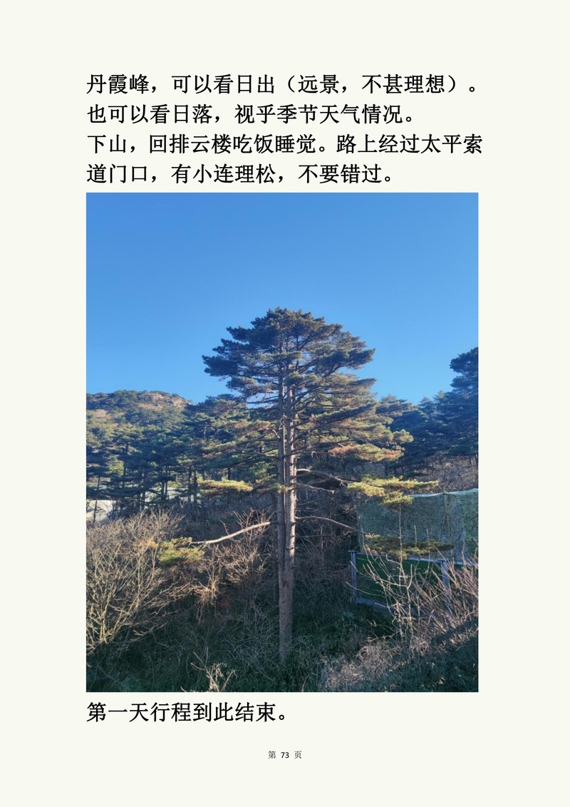 - 黄山的日出和日落是不容错过的美景,建议提前查看天气预报并规划观赏点。