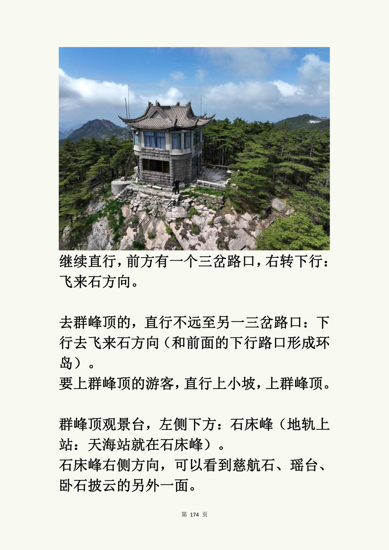 - 前山路线:慈光阁 -> 玉屏楼 -> 天海 -> 光明顶 -> 狮子峰
