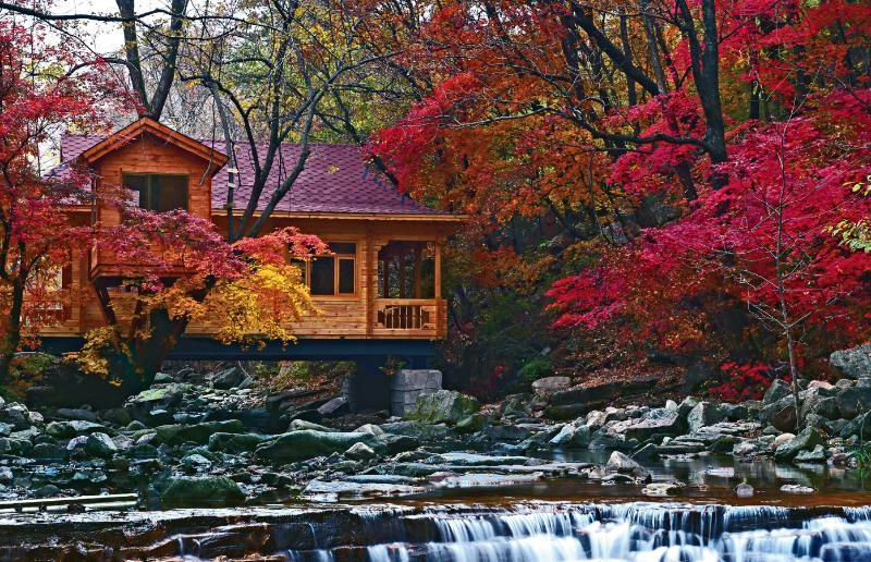 在本溪的众多红叶观赏地中,枫林谷景区的枫林覆盖率是最高的,这也与其“枫林谷”的名字极为吻合。枫林谷山峦起伏、溪流纵横,整个秋天它都美成了童话世界。照片摄于枫林谷景区。