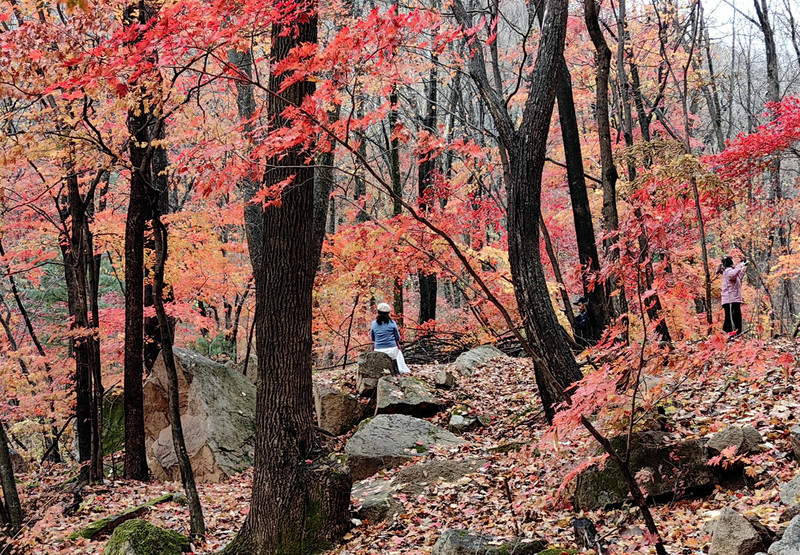 枫林谷是名副其实的“枫叶王国”,辽宁所有的14 个枫树品种,枫林谷均有分布,并且以分布最广、变红最早、色彩最艳、持续最久而著称于世。照片摄于枫林谷景区。