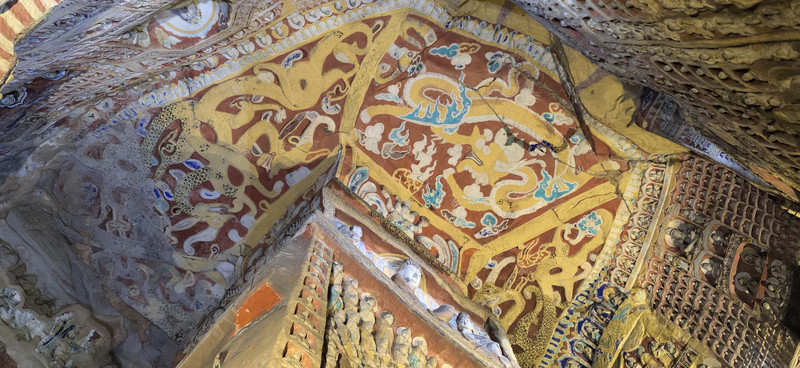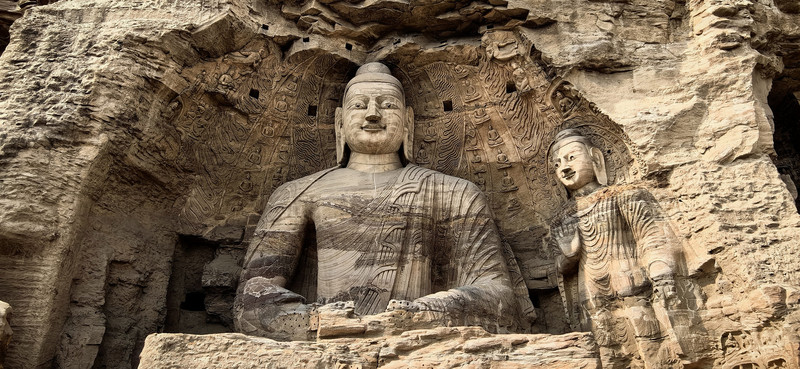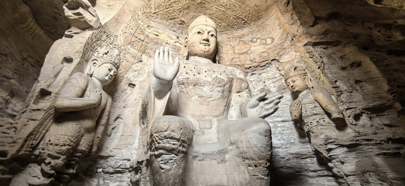 中国三大石窟我都有幸参观过,个人感觉敦煌莫高窟、龙门石窟的可观赏性远远不如云冈石窟。莫高窟只向游客开放了极少的一些清代修补过的佛窟,色彩和线条都有些失真,那些宋代、唐代精美的壁画和石像因文物保护的要求都被封存了,无法一睹真容;而龙门石窟被破坏得太过严重,几乎没有一个完整的石像能够保存下来。只有云冈石窟,所有洞窟都可以真真切切地展现在游客面前,绝对的视觉盛宴!