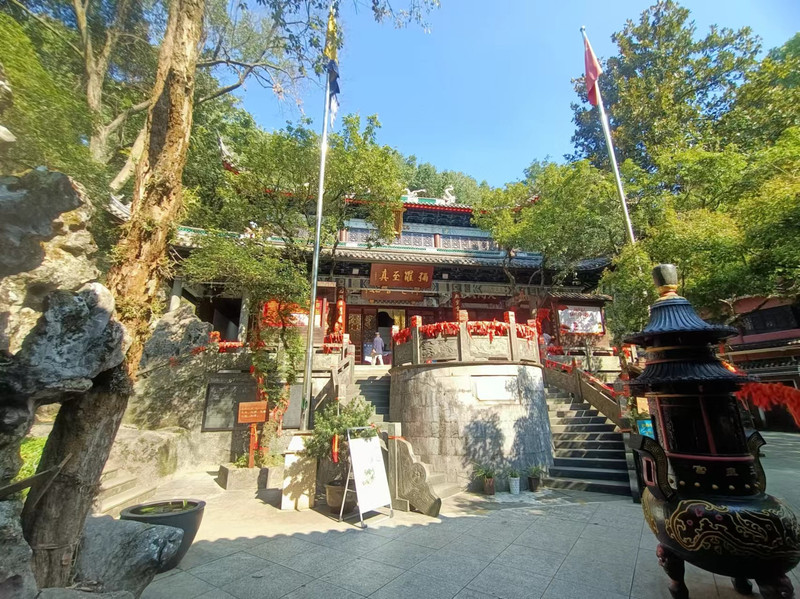 - 南朝梁时已有佛寺,五代吴越国时全面开发,南宋时寺庙拓展,明代改为道教官观。