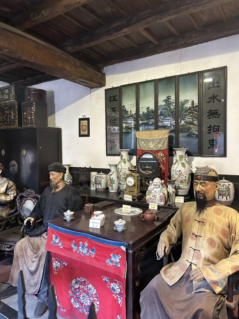 望着眼前的器具、文书,我仿佛看到了帐房先生核算账目,管理巨额资金的身影。接下来的第二、第三进院落,发分别是钱庄的营业厅大院、钱庄总经理等人的办公场所。这里的建筑布局严谨,装饰精美,体现了协同庆钱庄对于经营管理的重视。