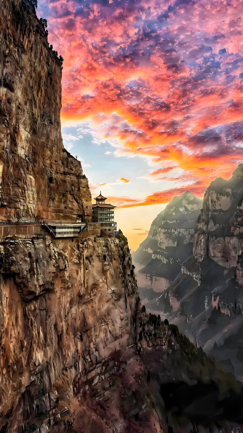 栖贤谷,这个隐藏在绵山深处的神秘幽谷,让我们实现了与自然的亲密接触。谷内奇峰异石林立,流水潺潺,每一步都是一幅美丽的画卷。当夕阳的余晖洒满山谷,金色的光芒与谷中的惬然重叠在一起,构成了动人心魄的画卷。