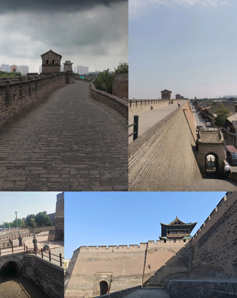 看完免费的古城街道,我们选择购通票游平遥古城。要知道,走下火车步行十几分钟,巍然的古城墙就浮现眼前。将近3000年的风雪摧残,古城墙仍旧岿然不动。我们登上阶梯、踏在石板路面,触摸着车辙、足迹,不由感慨晋商“货运百川”的辉煌盛景。