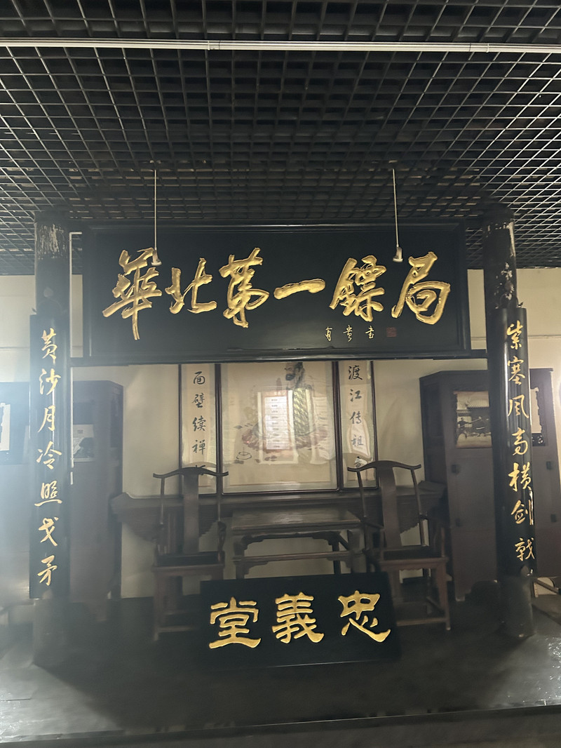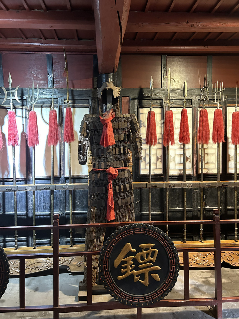最让我印象深刻的是,镖局后院小小的练武场;只见四周环绕着看台,彼时镖师就在这里刻苦训练,准备迎接充满未知挑战的护镖任务。站在练武场上,我闭上眼睛,耳边似乎回响起马蹄声、兵器交击声,及其镖师铿锵有力的口号。
