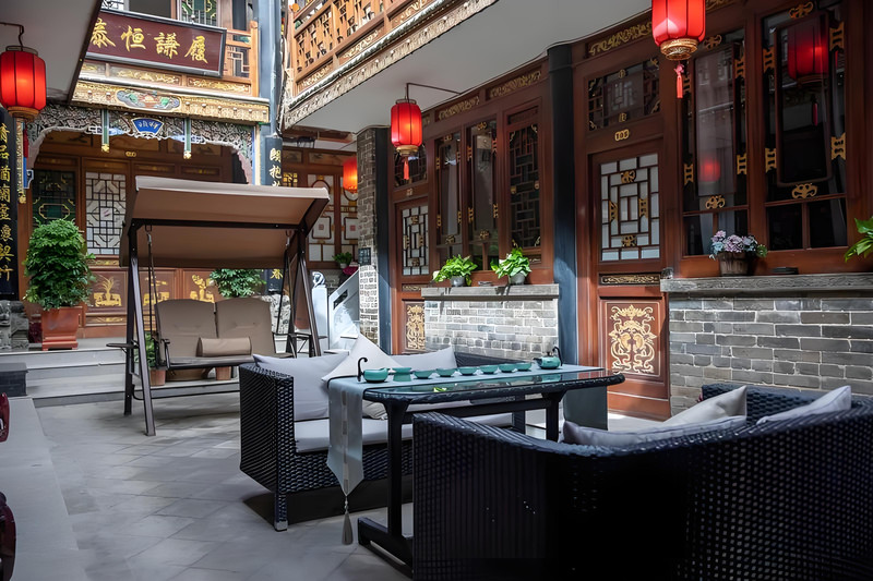 平遥古城素来不乏庭院深深深几许的四合院,宽敞气派的大门、精致繁复的兽角飞檐;珍贵的黑檀木中式窗楹、精巧的木雕与石雕、乡土气息浓烈的剪纸窗花……处处都彰显着三晋大地古宅的幽深与气势。