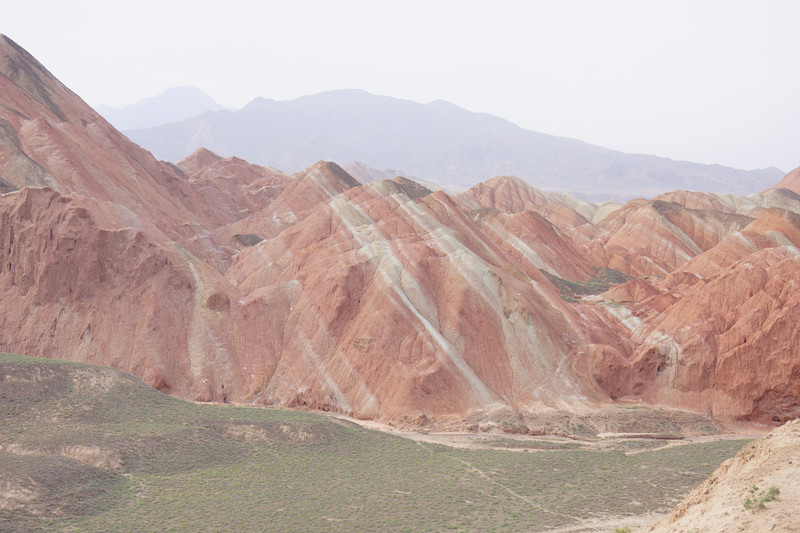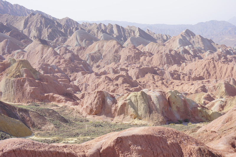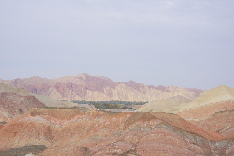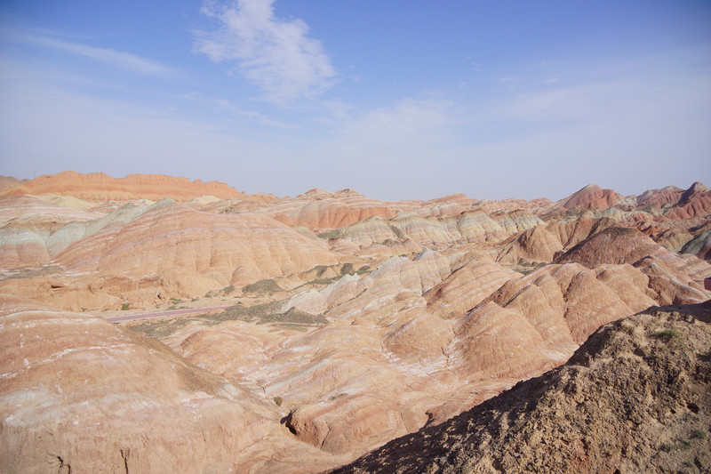 由于我们住在七彩丹霞景区的北门,而前往冰沟丹霞的班车只从西门路过,因此我们选择包车前往。一路上,路况极佳,车窗外的风景也逐渐变得多姿多彩。进入肃南境内后,路边的山峦开始呈现出千姿百态,让人不禁对即将到来的冰沟丹霞充满了期待。