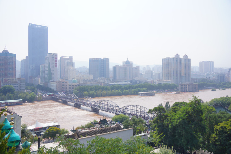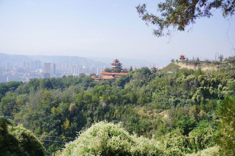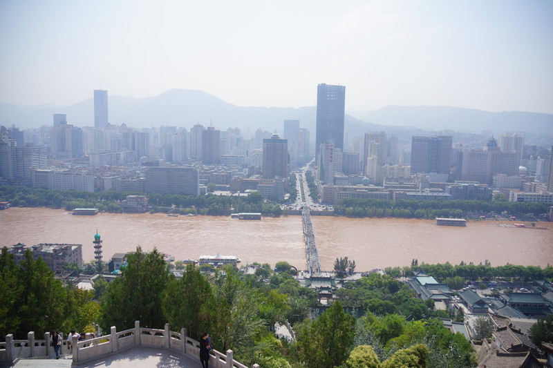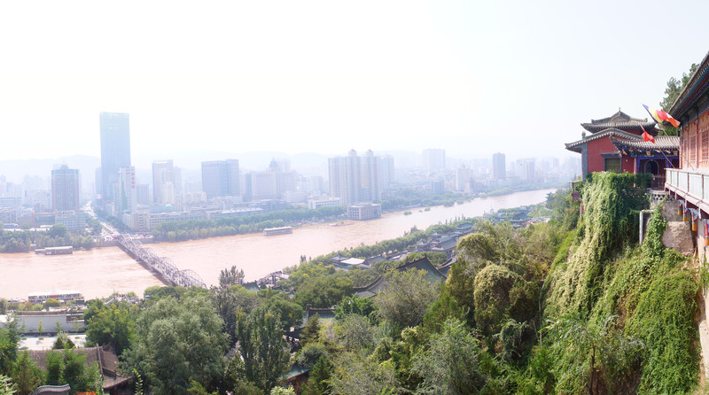 沿路下山,俯瞰兰州,横跨黄河的铁桥、白塔山的郁郁葱葱、亭台楼阁构成雄浑壮丽的画面。
