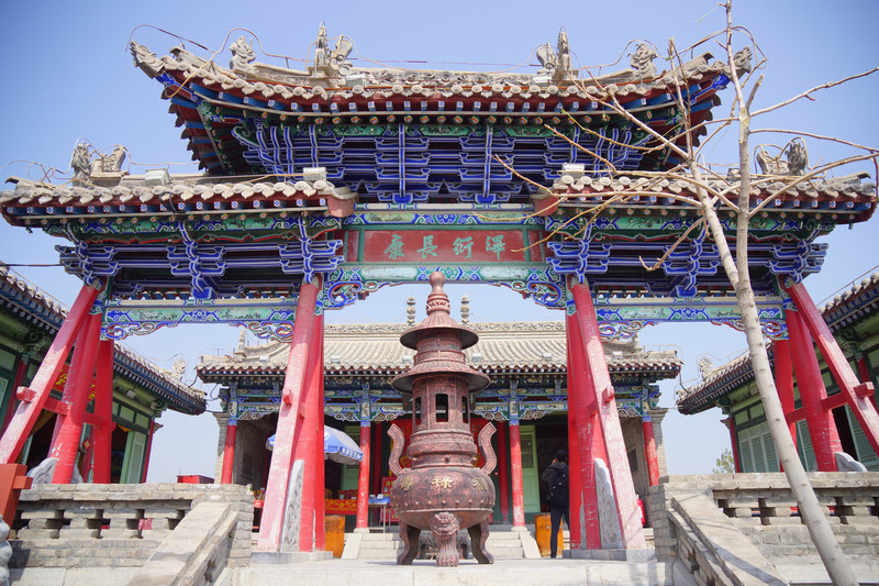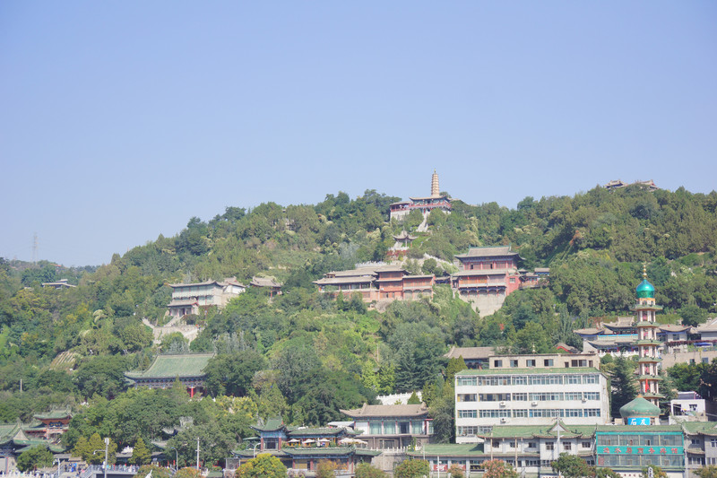 她位于黄河北岸,依山而建,山势巍峨起伏,山间还有多座宫殿式的建筑,因山头有一元代白塔而得名。