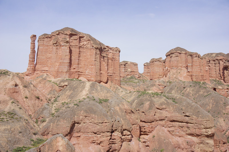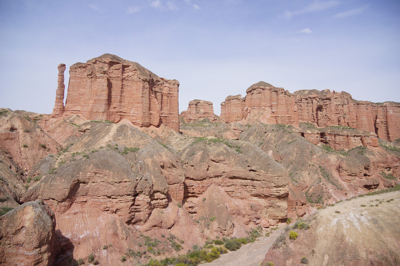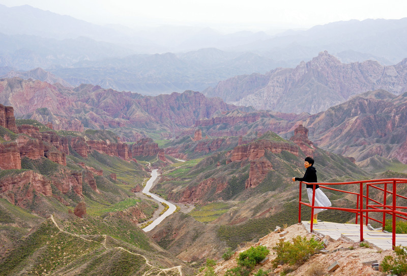 接着,我们来到了小西天观景区。这里的丹霞地貌同样令人叹为观止。我特别注意到了那些垂直的崖壁和陡峭的山峰,它们仿佛是大自然的杰作,让人不禁对大自然的神奇力量感到敬畏。在小西天,我还发现了一些特殊的丹霞地貌,它们上面覆盖着绿色的植被,与周围的红色丹霞形成了鲜明的对比,给整个景区增添了一抹生机。
