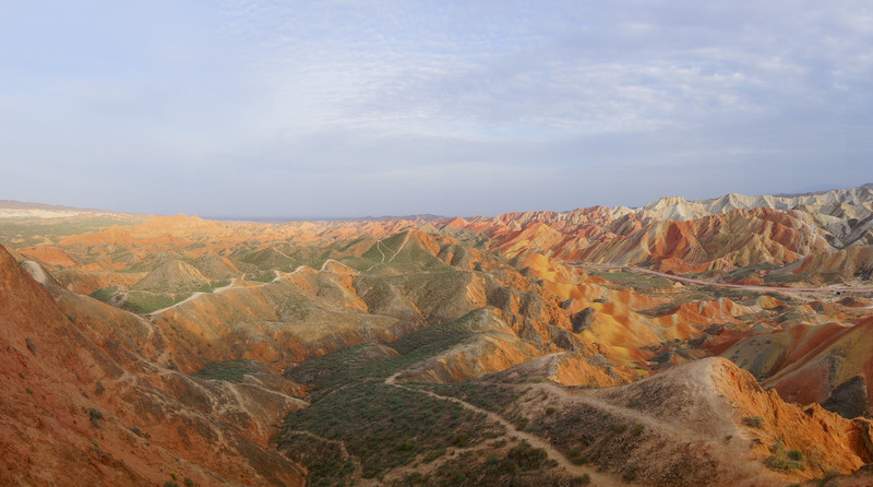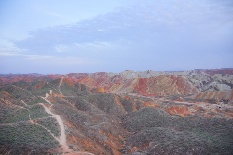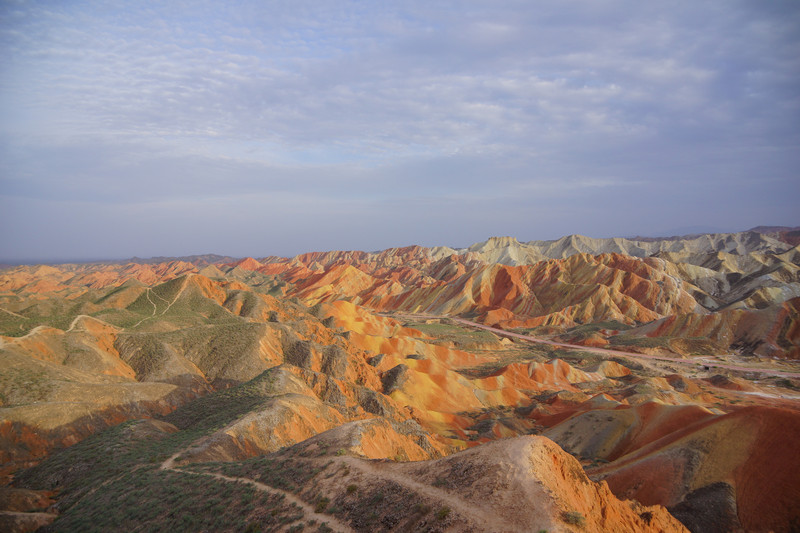 张掖丹霞以其独特的地貌而闻名,展现了古代丝绸之路上壮丽的自然景观。