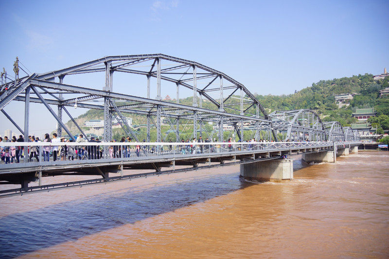 黄河特有的浑浊的力量令人生畏,水流湍急,气势磅礴。沿着黄河向西走没多远,就能看见一座铁桥,这就是黄河铁桥又叫中山桥,是兰州市的一个标志性景点,黄河铁桥不仅是兰州历史悠久的古桥,也是5464公里黄河上第一座真正意义上的桥梁,因而被称为“天下黄河第一桥”。
