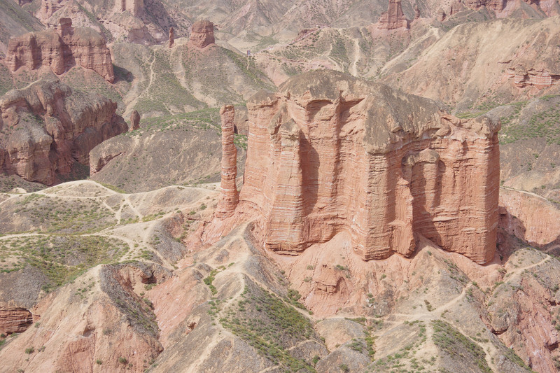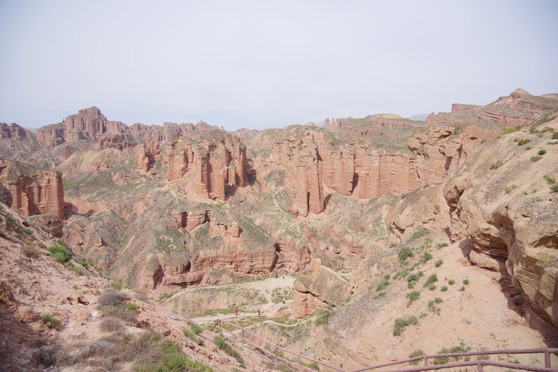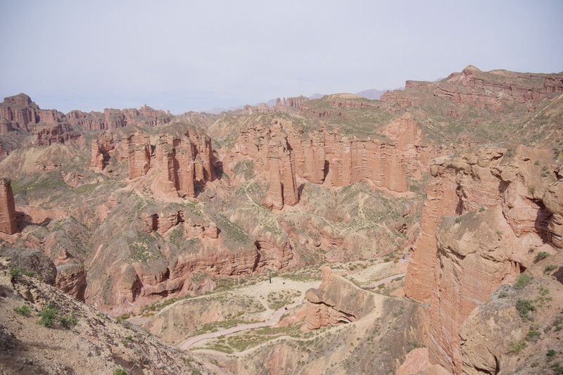 这里开发较晚,与七彩丹霞相比游人不多,也少了一份喧闹,可以安静的观景游玩。虽然颜色没有七彩丹霞丰富,这里清一色都是赭红色,看久了也有些单调,但是这里更加原始,你可以走在丹霞地貌里面,更近距离看这些奇特的地貌。
