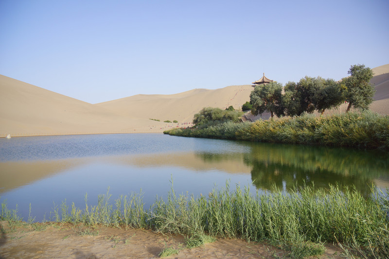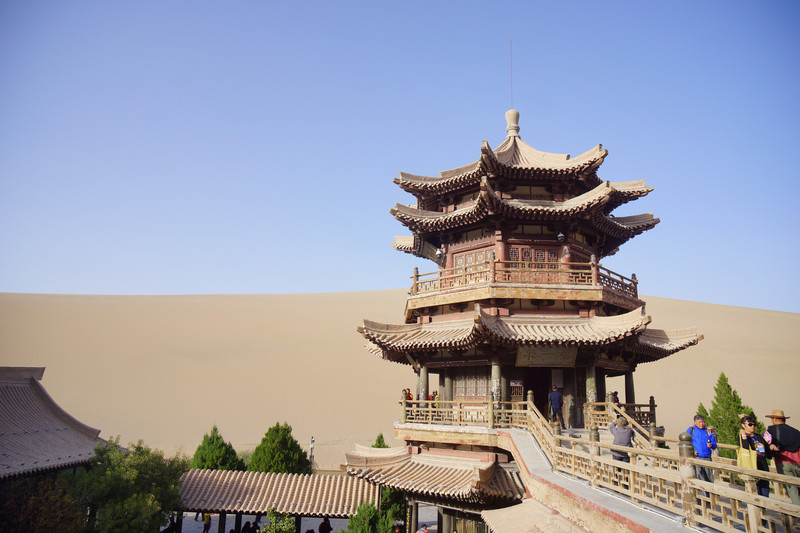 - 月牙泉作为沙漠中的奇迹,更是让人叹为观止。它像一弯新月落在黄沙之中,与周围的沙漠形成鲜明的对比。泉边的仿唐建筑群和月泉古柳,更是为这片景区增添了几分古色古香的气息。