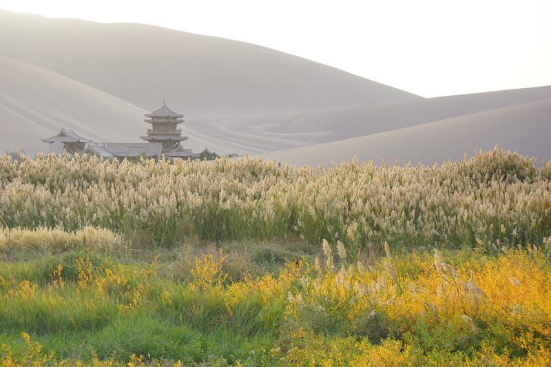 第二天:前往鸣沙山月牙泉,体验沙漠景观和清澈泉水。晚上继续游览敦煌市区。