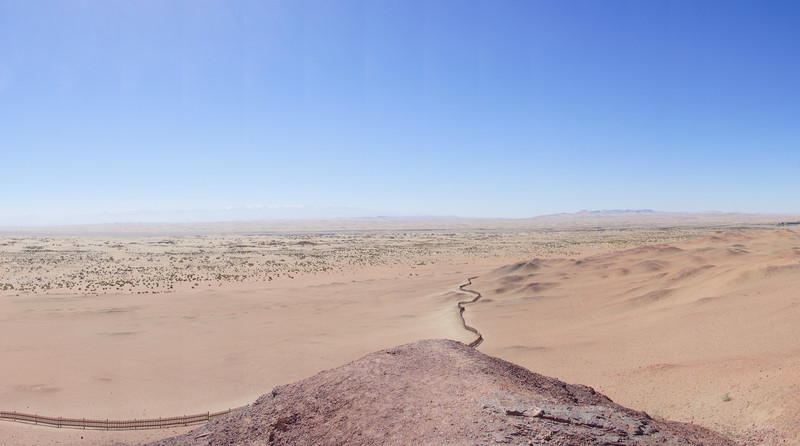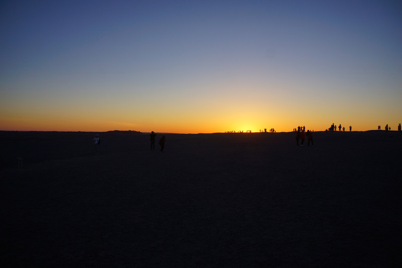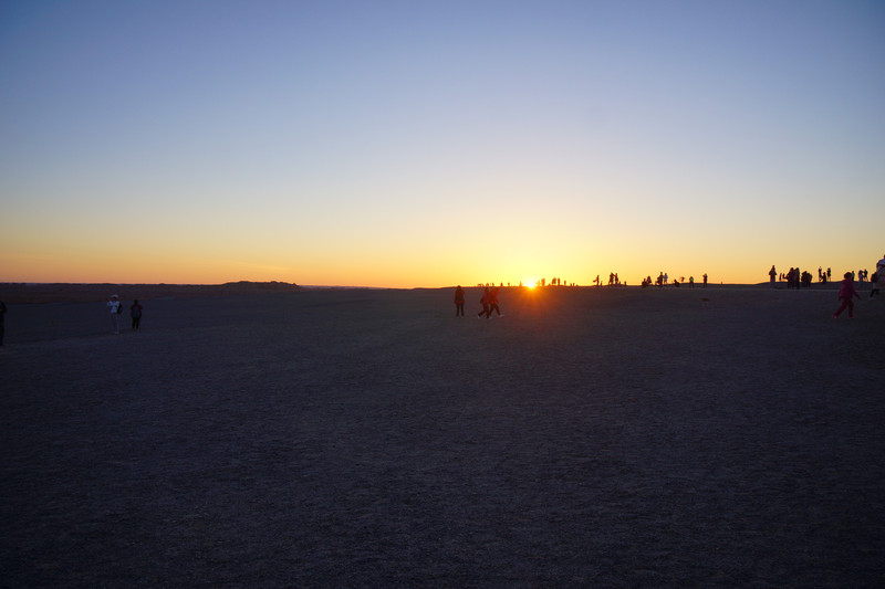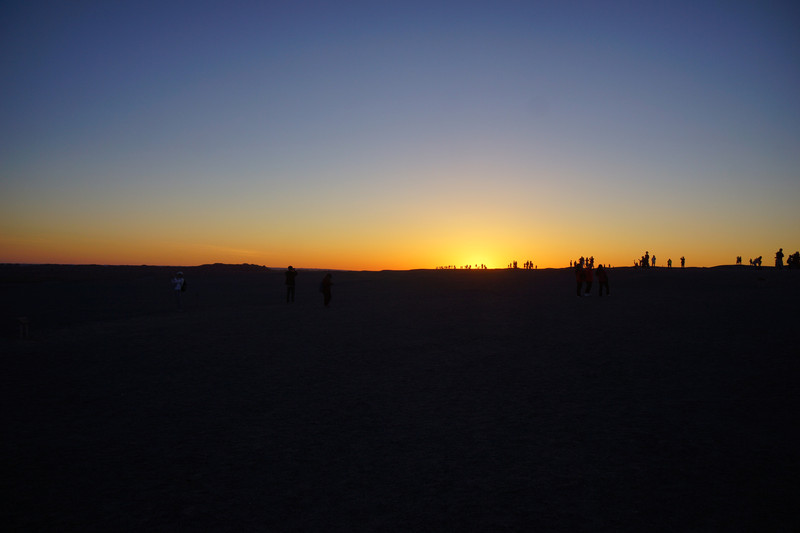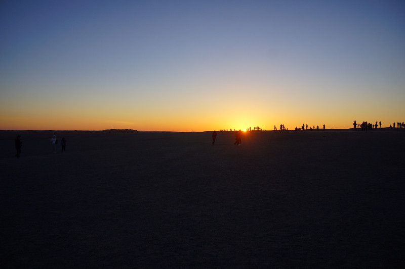 晚上10点多钟,大巴带着我们急驰在死一般寂静的路上,穿越千里黄沙,万倾戈壁,除了大巴的两束灯光,周围没有任何光源。在这片无人区里,远离城市光污染,猜对了,是看星空的绝佳圣地:抬头仰望,看到了最璀璨的星空,各个星座屹立在天空,密密麻麻,有明有暗,而且天空是一百八十度的广角,视野非常开阔;看见了,那一条绚烂了亿万年的银河;终于满足了我对漫天繁星和浩渺夜空的垂涎(没有照相,因为没带三脚架,拍不出效果)。