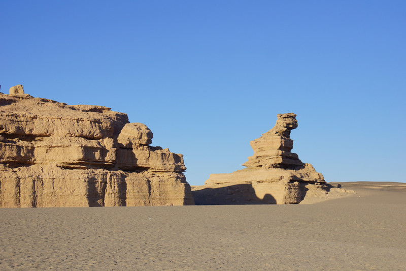 这里看不到一棵树,看不到一棵草,没有一丝丝绿色,在千万年大风不断吹蚀下,一个个土堆山包的下部遭受强风剥蚀,形成地面支离破碎的凹陷垄槽形态;这就是戈壁上奇幻壮观的雅丹地貌。雅丹地貌是一种典型的风蚀性地貌,是由风对干旱区的湖积(干涸了的湖泊堆积的泥土层)或冲积平原吹蚀而形成。