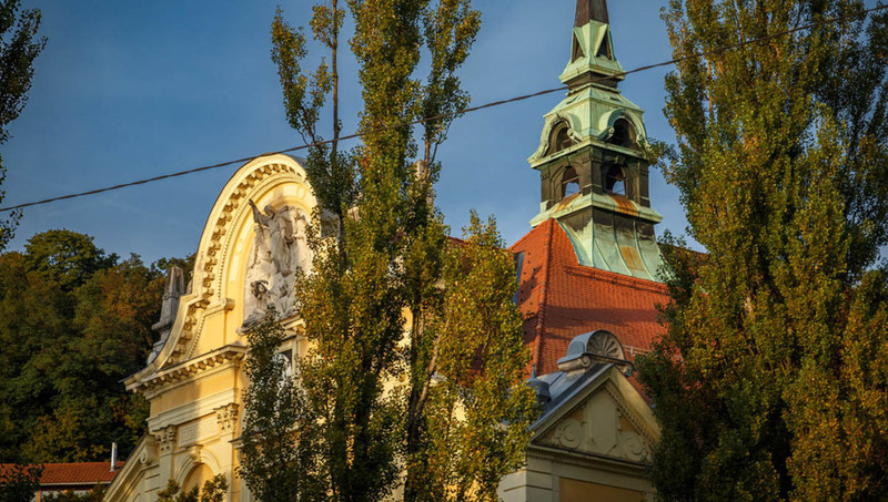 圣弗朗西斯教堂是普列赤涅克的杰作之一,其双圆顶的设计在当时的郊区显得格外引人注目。教堂的每一处细节都体现了普列赤涅克对建筑的热爱与追求,即使在现代建筑的包围下,它依然保持着独特的魅力。站在教堂前,仿佛能听到建筑师对完美的不懈追求。