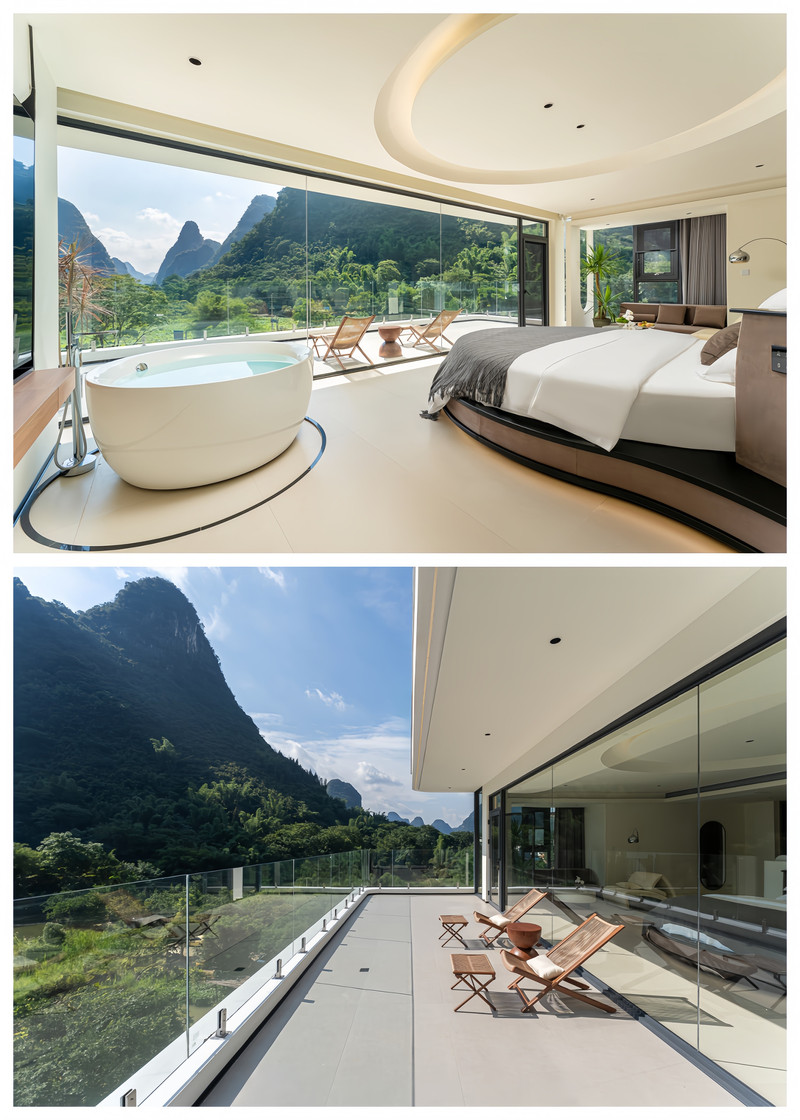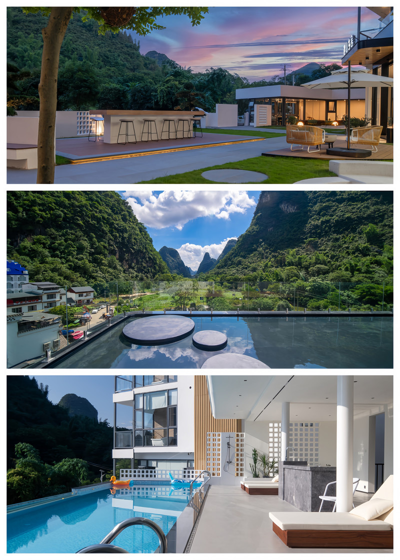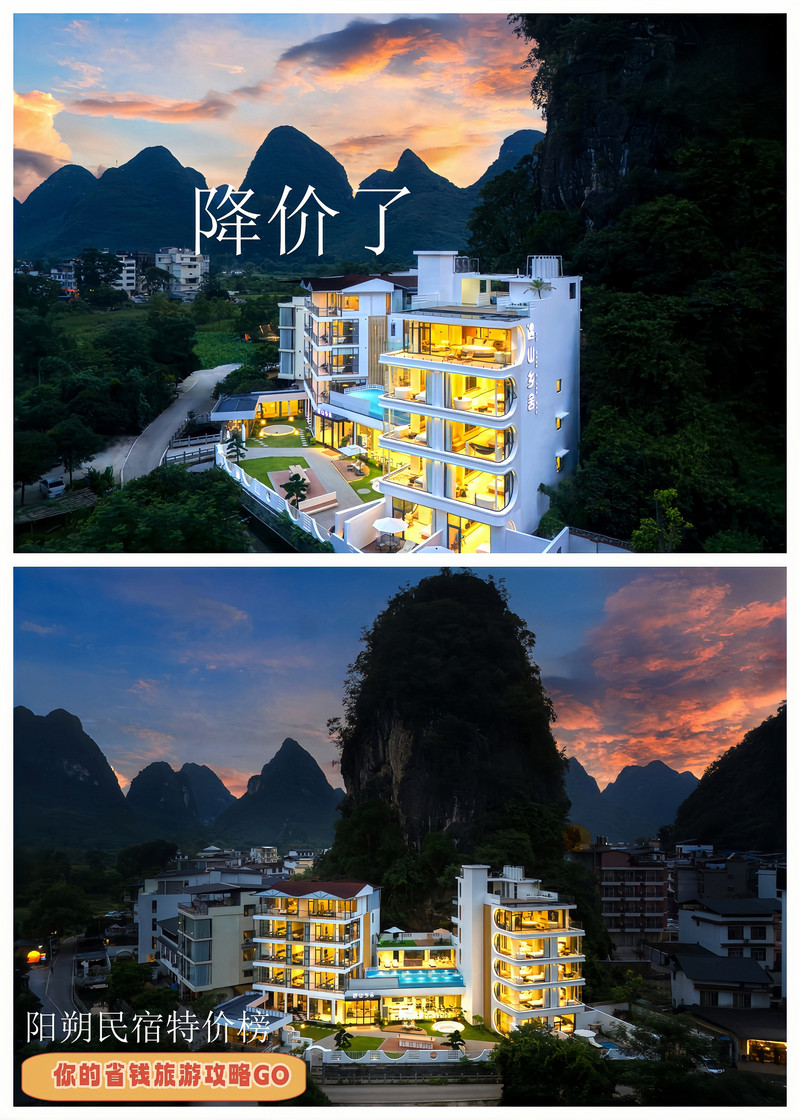 # 住宿篇住宿选择了位于遇龙河景区附近的遇山乡舍。这家民宿地理位置优越,位于遇龙河9个漂流码头的中段,周边景点一应俱全,非常适合家庭度假。民宿提供免费的早餐、时令水果、民族服装拍照以及阳朔高铁大巴接驳站接送一次,性价比极高。我们提前预订了房间,确保到达时有舒适的住处。
