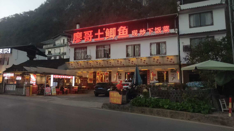 晚餐我们选择了民宿旁边餐馆-遇窑记,品尝了阳朔的土窑烤鸡等特色菜肴。女儿对烤鸡赞不绝口,认为这是他此行中最美味的一道菜。