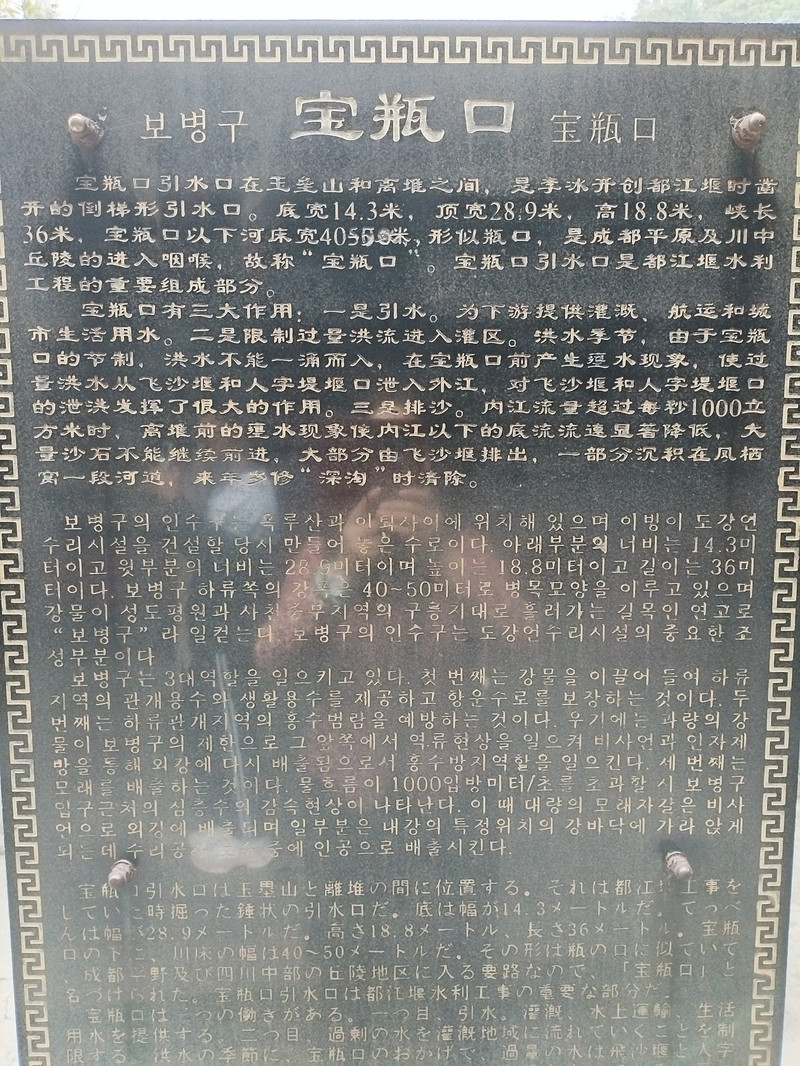 - 在都江堰,阿李跟随人流参观了伏龙观、宝瓶口、安澜索桥等主要景点,一直走到了都江堰最前端的鱼嘴。