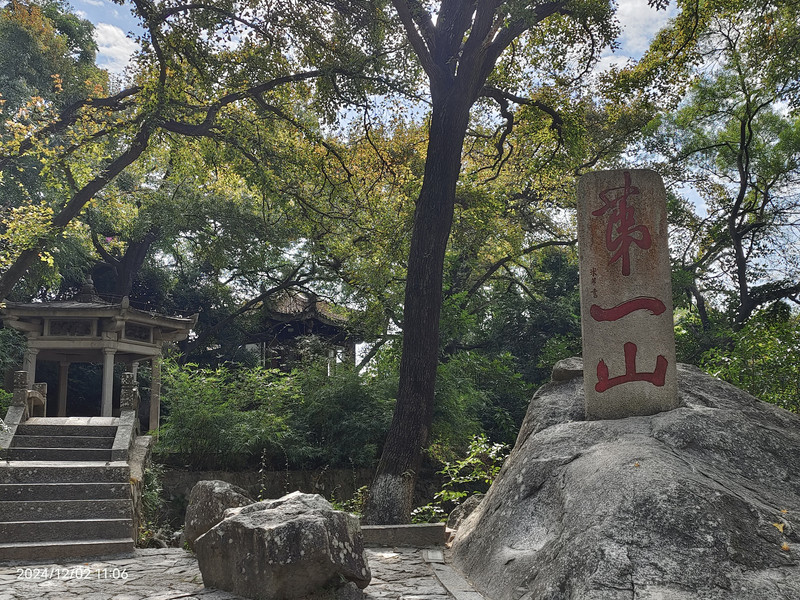 千手登山道旁的“第一山”碑刻,为宋代四大书法家之一的米芾的作品。据说当年米芾游历江苏盱眙南山时所写,后绍兴年间,尚书李邴隐居清源,因酷爱米芾墨宝便拓印回来,刻在石碑上,立于清源山。而后明末战乱时南山石碑被毁,泉州人郭某任盱眙县县令时又将此拓印回去,从此便有了南来北往第一山的佳话。