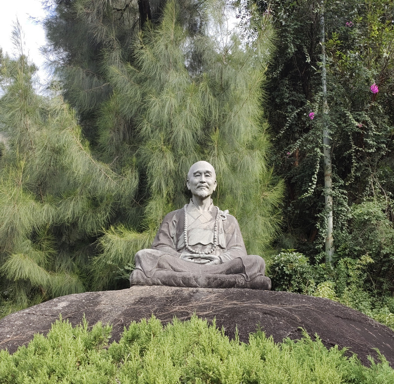 右侧石碑为大师生前最后遗墨“悲欣交集”巨石