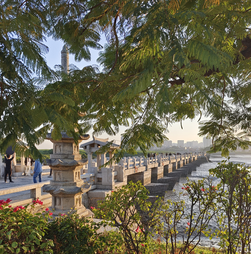 洛阳桥,这座中国境内第一座跨海石桥,以其独特的建筑风格和悠久的历史文化,成为了泉州不可错过的景点。走在桥上,我仿佛听到了千年前的海浪声和工匠们的锤凿声。桥上的佛塔和石雕神像,更是展现了古代工匠们的精湛技艺和审美追求。夕阳西下时,洛阳桥更是美得令人陶醉,夕阳的余晖洒在桥面上,仿佛给这座古桥披上了一层金色的外衣。