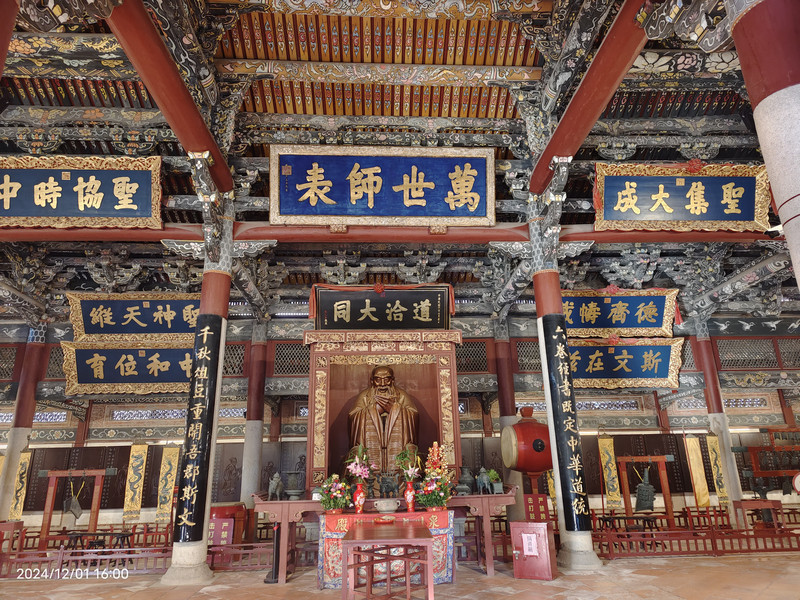主殿内部除了可以看到宋代木结构之外,正厅的上面还悬挂着清代康熙皇帝御书的“万世师表”木匾额,同样见证着泉州府文庙的地位。