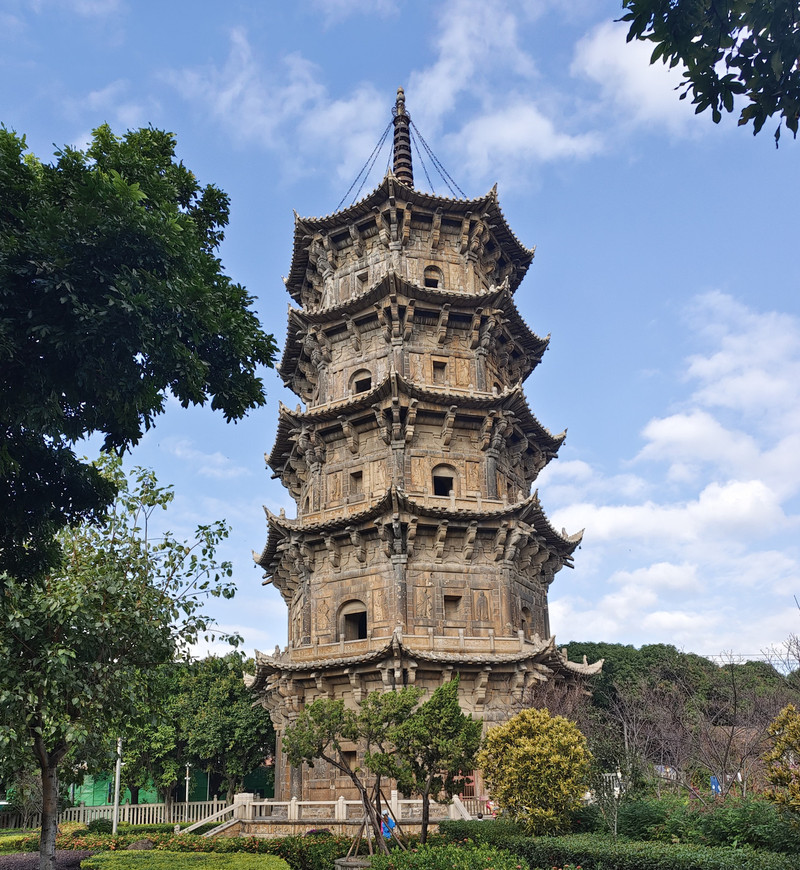 洛阳桥,又名万安桥,是中国境内第一座跨海石桥,有“中国古代四大名桥之一”之誉。该石桥始建于北宋皇祐五年(1053年),嘉祐三年(1058年)时任泉州知州的蔡襄开始主持造桥,通过筏型基础和种蛎固基解决了包括铺桥面、建桥墩在内的多个难题。嘉祐四年(1059年),洛阳桥正式建成,蔡襄亲自题写《万安桥记》。南宋时期,洛阳桥的护栏外增设多座佛塔和风水塔。该桥长1200米,共有46个桥墩,桥的中段建在一座名为中洲的江心岛上。在桥的护栏外侧现存7座石塔,其中楼阁式塔3座,宝箧印经式塔1座,五轮塔1座,经幢1座,镇风塔1座,在中洲上还有1处塔的基座。