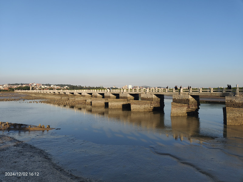 此时已经落潮,桥基露出水面,如今仍可以从那些缀满白色蛎房痕迹的桥墩石,窥探它当年的模样。