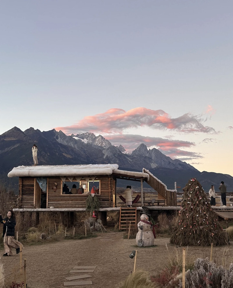 找到了一家可以看到日照金山的咖啡馆! 雪山下小镇生活,日照金山,远处的雪山和白沙古镇