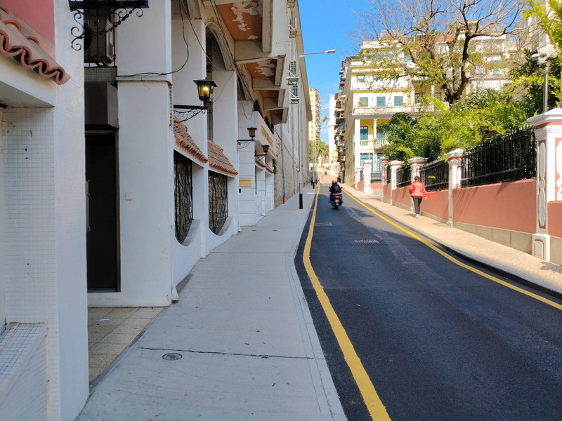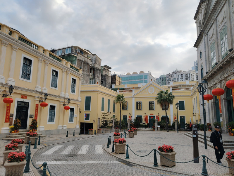 原计划渔人码头门口坐车三站路,去澳门永利。里面有棵价值二十亿的发财树,据说每一片叶子都是纯金的。十二点开始,每隔半小时展出一次。但现在还早,去了干等没劲。决定直接去总督府。渔人码头出来原路上天桥,中间的口子下去就是公交站台。坐23路到区华利前站下车。下车后过马路几十米就到了总督府。