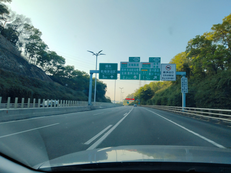 进入惠州后,气温直接飙升到23度。刚刚在麻布岗服务区已经把外套脱了,此时在车上还是身上出汗了。