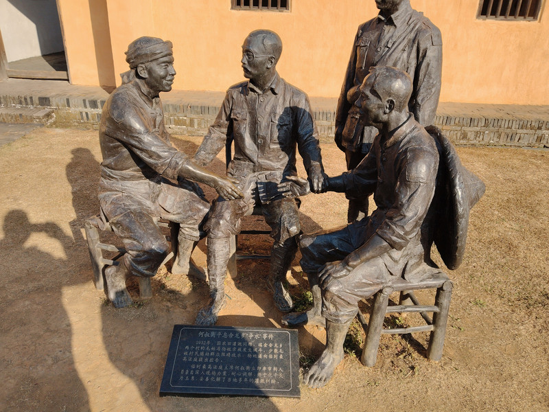 苏维埃最高法院旧址的院子里,何叔衡调解当地老乡之间矛盾的铜塑。