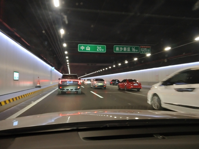 隧道里看见粤港澳三地车牌的车子。感觉挺牛气的!