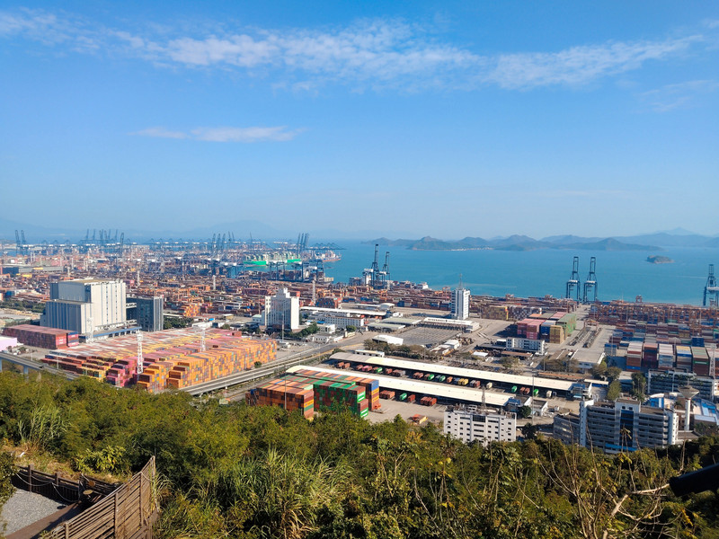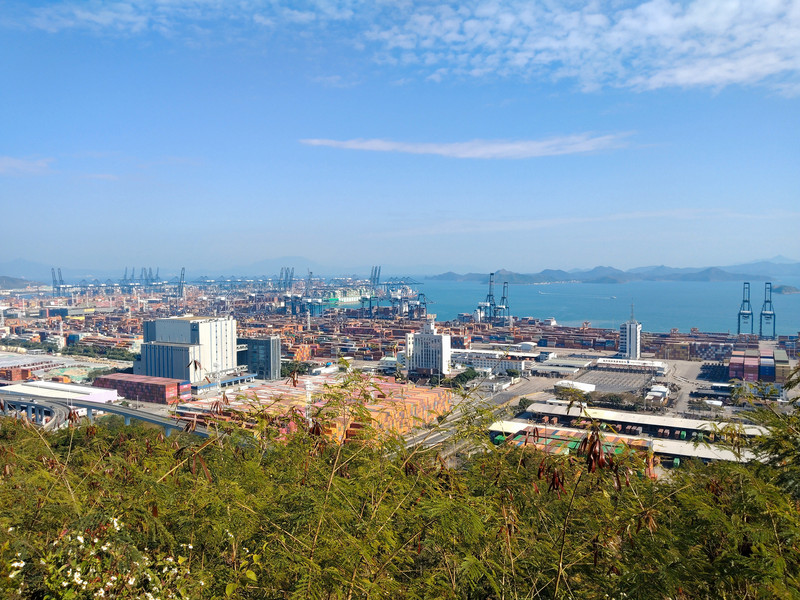 往上走一段,站在观景台上来一张鸟瞰盐田港全景照。