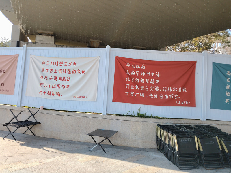 山上是夜市,到了晚上会很热闹。这里有烧烤,酒吧,奶茶铺。东西看似不咋的!但很贵。